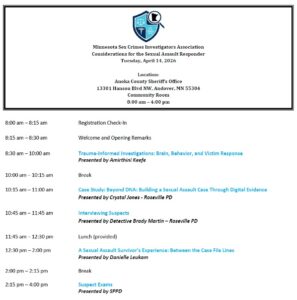 The association has established a strong network of sex crimes investigators, providing members with a forum to discuss and exchange information related to sex crimes, case management, and operational strategies. Additionally, MNSCIA offers high-quality training and educational opportunities, including Minnesota POST credits, for law enforcement and other personnel involved in sex crimes investigations.