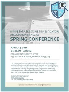 In 1991, a small group of dedicated sex crimes investigators from law enforcement agencies across Minnesota came together to form the Minnesota Sex Crimes Investigators Association (MNSCIA). Their goal was to assist members in the investigation of sex crimes by fostering collaboration and sharing resources. Today, MNSCIA has grown to include over 150 investigators, attorneys, advocates, and more from around the region.